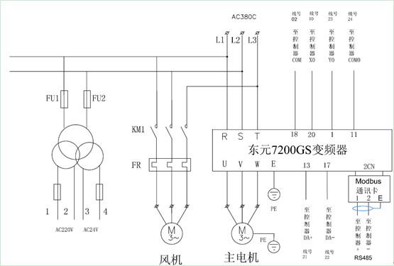 ⑴ 根據(jù)東元7200GS變頻器及臺(tái)安CCAC-M型空壓機(jī)控制器的規(guī)格,完成電源線及控制線的配線,注意變頻器外圍選購件(如:空開、斷路器、電抗器等)的連接及所用動(dòng)力線的線徑、材質(zhì)。